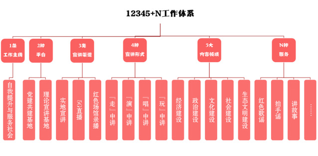 项目以职业院校、中小员工及社区群众为服务对象,在运行过程中形成了“12345”+N的服务体系,坚持基层“点菜”,联合“办席”的原则,不断拓宽理论宣讲和党建共建平台,综合运用5G直播等渠道,结合淄博丰富的齐文化资源完善宣讲内容,创新“走、唱、演、玩”宣讲形式,实现志愿者的自我提升与服务社会同行并举。