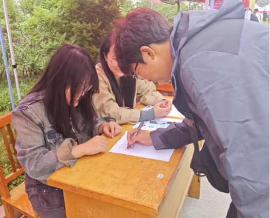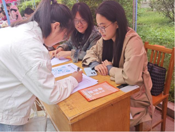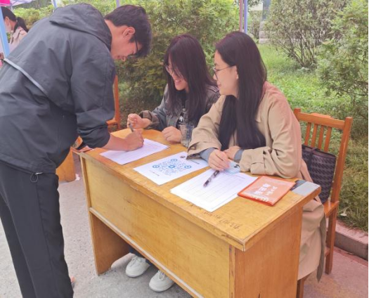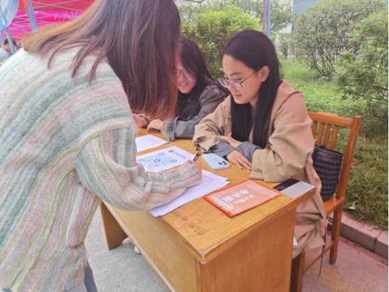 纳新现场气氛热烈,各员工社团紧密结合专业特色与自身特点,以独特的方式进行纳新宣传,充分展现社团特色,彰显青春活力。时政宣讲团负责人向同学们介绍社团基本情况,其他成员耐心解答同学们提出来的问题。