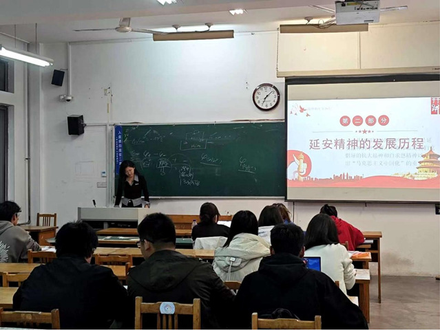 “延安精神是中华民族优良传统的继承与发展,是我们党的性质和宗旨的集中体现。”刘亚琦围绕“什么是延安精神”、“延安精神的发展历程”以及“延安精神的现代价值”三个部分展开宣讲。她以短视频引入,带领大家重温了革命战争时期党中央在延安的峥嵘岁月,介绍了延安精神的发展历程以及延安精神的现代价值。在新时代,学习延安精神,要保持“心之所向,素履以往”的理想信念,要增强“焚膏继晷,兀兀穷年”的执着韧劲;要提升“砥志研思,精进不休”的学习动力。