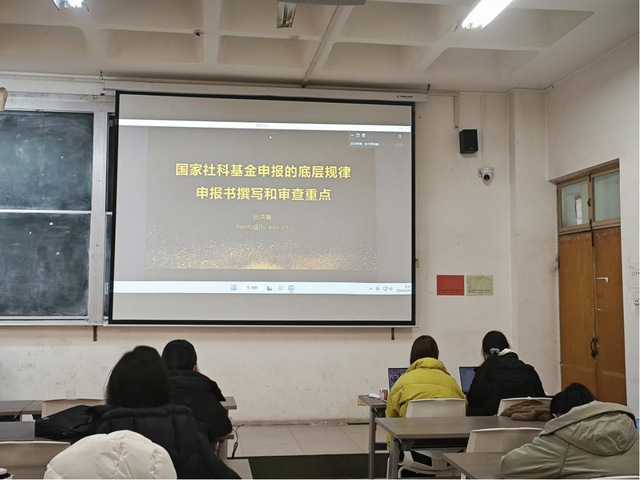 12月15日上午,公司组织2024级全体研究生在一号教学楼305教室集中观看吉林大学教师教学发展中心副主任、课程思政教学研究中心副主任田洪鋆教授作《国家社科基金申报的底层原理,题目和申请书的撰写与审查重点》主题报告会。