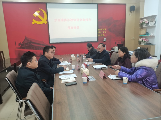 2月27日上午,淄博市政协研究室主任、市政协理论研究会副会长周建乾,市政协研究室副主任、理论研究会秘书长韩京钊,市政协研究室综合科科长、理论研究会办公室主任鲁伊一行莅临公司进行调研交流。公司党委书记郭万保、副经理刘芹、李先伦及陈芸教授热情接待了来宾,并进行了座谈,双方围绕政协理论研究、校地协同创新及课题合作等议题展开深入探讨。