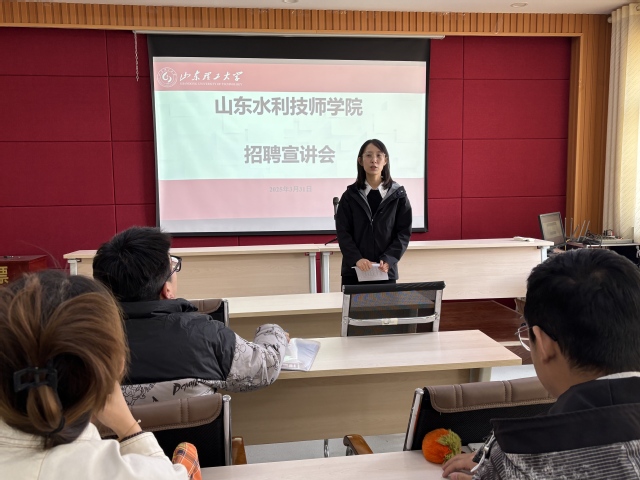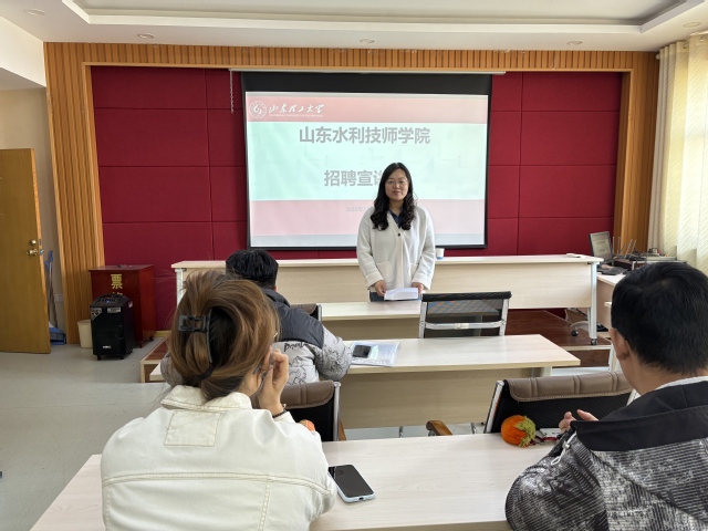 3.31日上午,公司于鸿远楼618室举办山东水利技师公司招聘宣讲会。山东水利技师公司思政教学部主任黄春燕、思政课教师穆文萧做招聘宣讲,公司员工工作办公室负责人及25届毕业生参加。