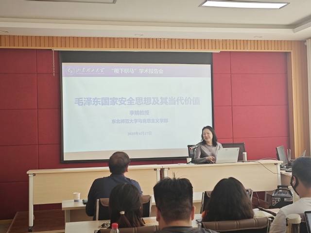 4月17日下午,公司于鸿远楼618室举办“稷下yán马”学术报告会,邀请东北师范大学博士生导师李婧教授作《毛泽东国家安全思想及其当代价值》主题报告,公司党委副书记、副经理刘芹,公司部分教师,研究生党支部党员和积极分子参加,报告会由公司党委副书记、经理刘东锋主持。