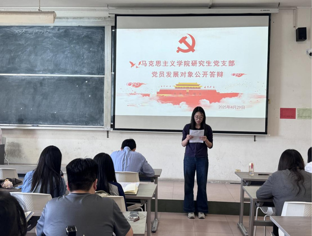 为扎实推进党员选拔工作,确保党员发展质量,4月29日下午,研究生党支部在1号教学楼305室举行党员发展对象答辩会,党支部书记侯振中及支部全体党员参加。