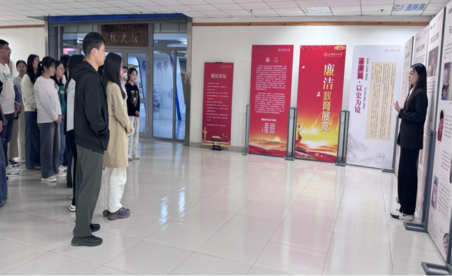 在两名讲解员的带领下,同学们依次进行了鉴廉篇、倡廉篇、警廉篇、践廉篇、养廉篇五大板块的学习。“鉴廉”即以史为鉴,借生动故事呈现中国古今廉洁文化,彰显中华民族对廉洁的崇尚;“倡廉”即倡导廉政,展现中国共产党党在各时期反腐倡廉历程,凸显全面从严治党的坚定执着;“警廉”即以案为鉴,党的十八大后“打虎”“拍蝇”“猎狐”行动打击腐败,典型案例具有强烈警示作用;“践廉”即以行践言,九位优秀党员以自身实践诠释初心使命,树立前行标杆;“养廉”即涵养正气,展示党纪党规引导师生共筑校园清风,营造廉洁氛围。