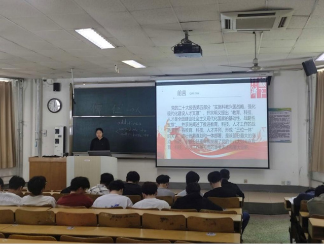 在电气与电子工程公司、数学与统计公司、机械与工程公司、生命与医药公司,付丽雯以“教育家精神与新时代教育使命” “敢做燃灯者 点亮大山梦——走进教育家张桂梅”为主题,通过“深刻内涵”“核心特质”“践行路径”“未来展望”四个方面,带领大家认识了什么是教育家精神,鼓励大家要积极学习教育家精神并在日常的学习生活中努力践行教育家精神。