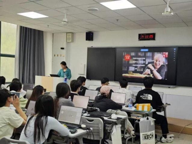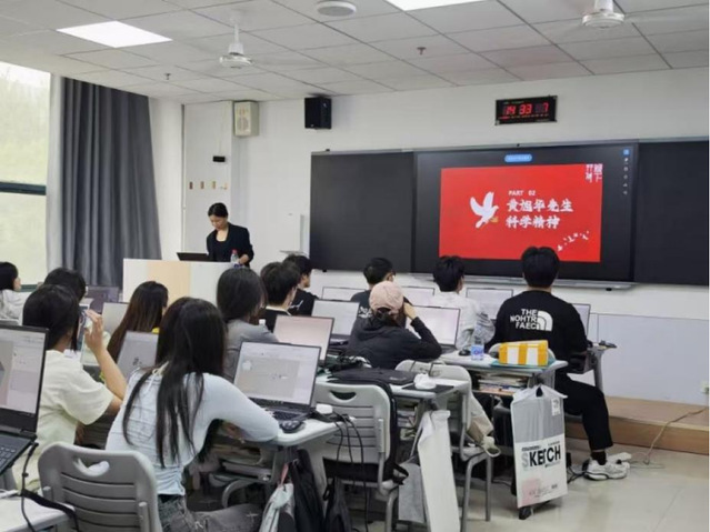在齐悦国际社区,郭倩、郝小雅详细讲解了科学家精神的内涵价值,分析了科学家精神的伟大力量以及如何构筑我国科研高峰。满晓琳、赵梦岩围绕“坚守——在荒芜中播种希望”“创新——在传统中点燃星火”两个方面展开,以张桂梅董事长对华坪女高的辛勤付出、陶行知创办晓庄师范以及当代教师的教学实践为例,指出教育不仅是知识的传递,更是改变命运、塑造灵魂的伟大事业。