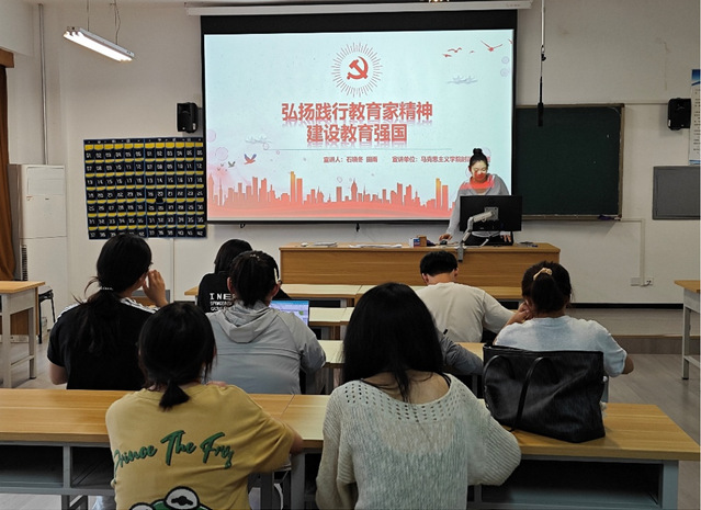 田雨、石晓冬到外国语公司开展主题为“弘扬与践行科学家精神 赋能教育强国建设”的理论宣讲。她们激励青年学子应将个人理想融入国家发展大局,以实际行动为中华民族伟大复兴贡献青春力量。