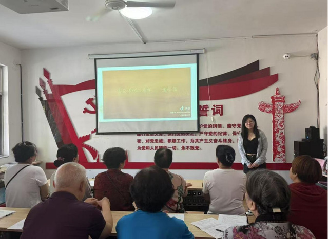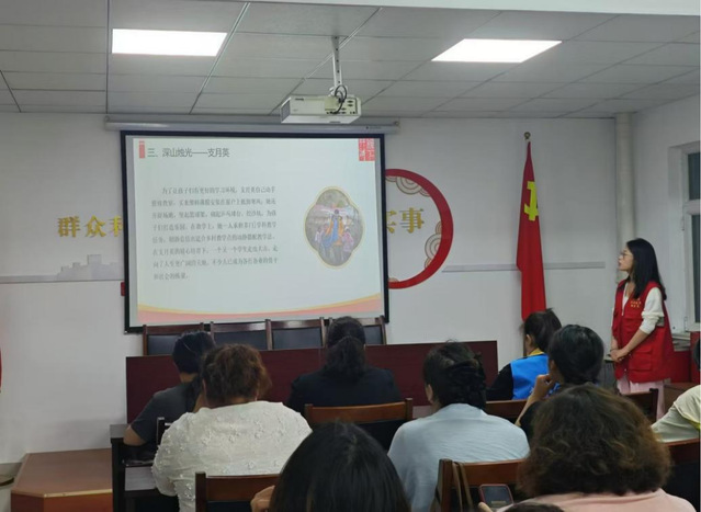 张晓涵到尚文苑社区党群服务中心开展主题为“扎根泥土,托举希望——教育家精神的乡村实践”的理论宣讲活动。她通过“心怀大爱的草原曼巴——更确木兰”和“深山烛光——支月英”两个故事介绍了新时代教育家精神的内涵。