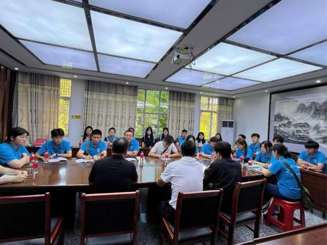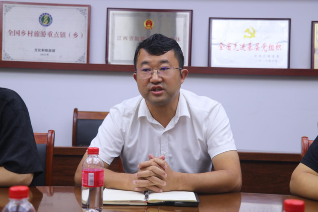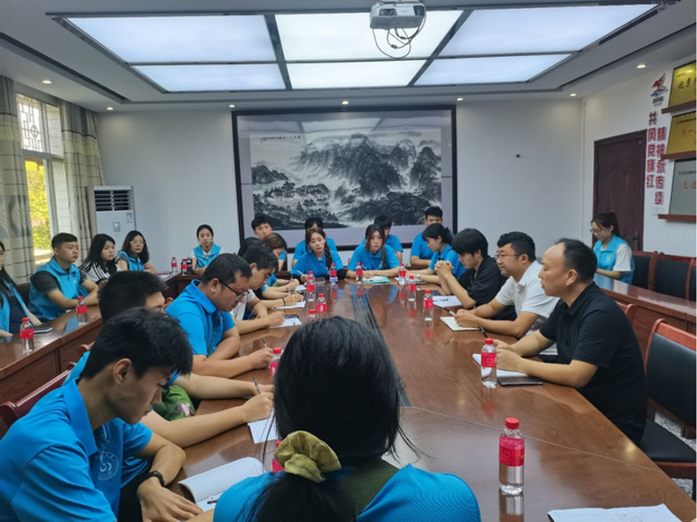 当日上午,实践团与茅坪镇党委副书记、镇长叶圣勇,茅坪镇副镇长、神山村党支部书记、村委会主任彭展阳,茅坪镇党委委员、宣传委员、统战委员谢辉展开交流座谈。谢辉向实践团成员介绍了神山村的基本情况。近年来,神山村致力于红色文化挖掘与新农村建设,宛如一颗在井冈山上冉冉升起的新星,绽放出独特的光彩。