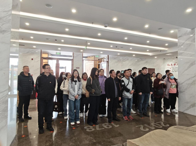 东营市历史博物馆设有《史前文明展》《不忘初心—中共广饶县党史展》《广饶民俗展》等9个基本陈列,展出文物1500余件,生动、翔实、系统地再现了东营市8000多年的悠久历史、灿烂文化与发展脉络。同学们在明清书画、石刻造像等馆藏展前驻足,在古今对话中体悟文化传承的深意;教师们结合展区内容,向员工讲解地域历史与革命历程的紧密关联,让大家深刻认识到,红色基因的孕育离不开深厚的文化土壤与坚实的群众根基。