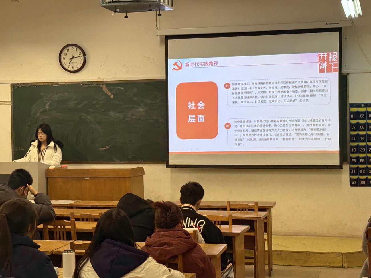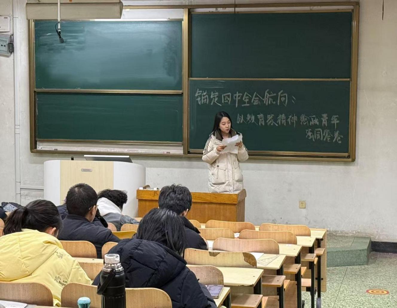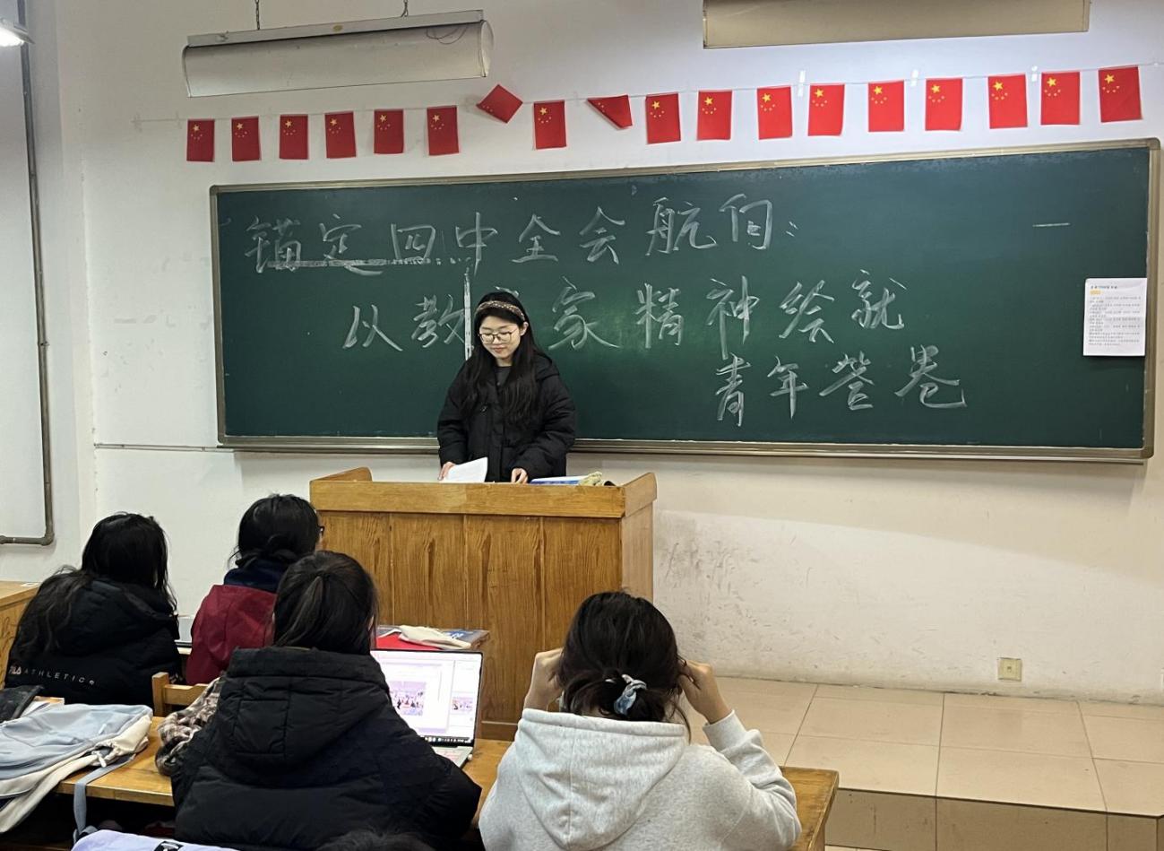 12月22日,刘子瑜、李心如到外国语公司开展主题为“锚定四中全会航向:以教育家精神绘就青年强国答卷”的理论宣讲。她们围绕“二十届四中全会为教育家精神赋予时代新坐标”、“教育家精神和全会精神的内在契合”与“以全会精神为指引践行教育家精神”三个部分展开宣讲,鼓励大家以更加饱满的热情和更加坚定的信念投身到中国式现代化的建设当中,用自己的实际行动书写中华民族伟大复兴的青春篇章。